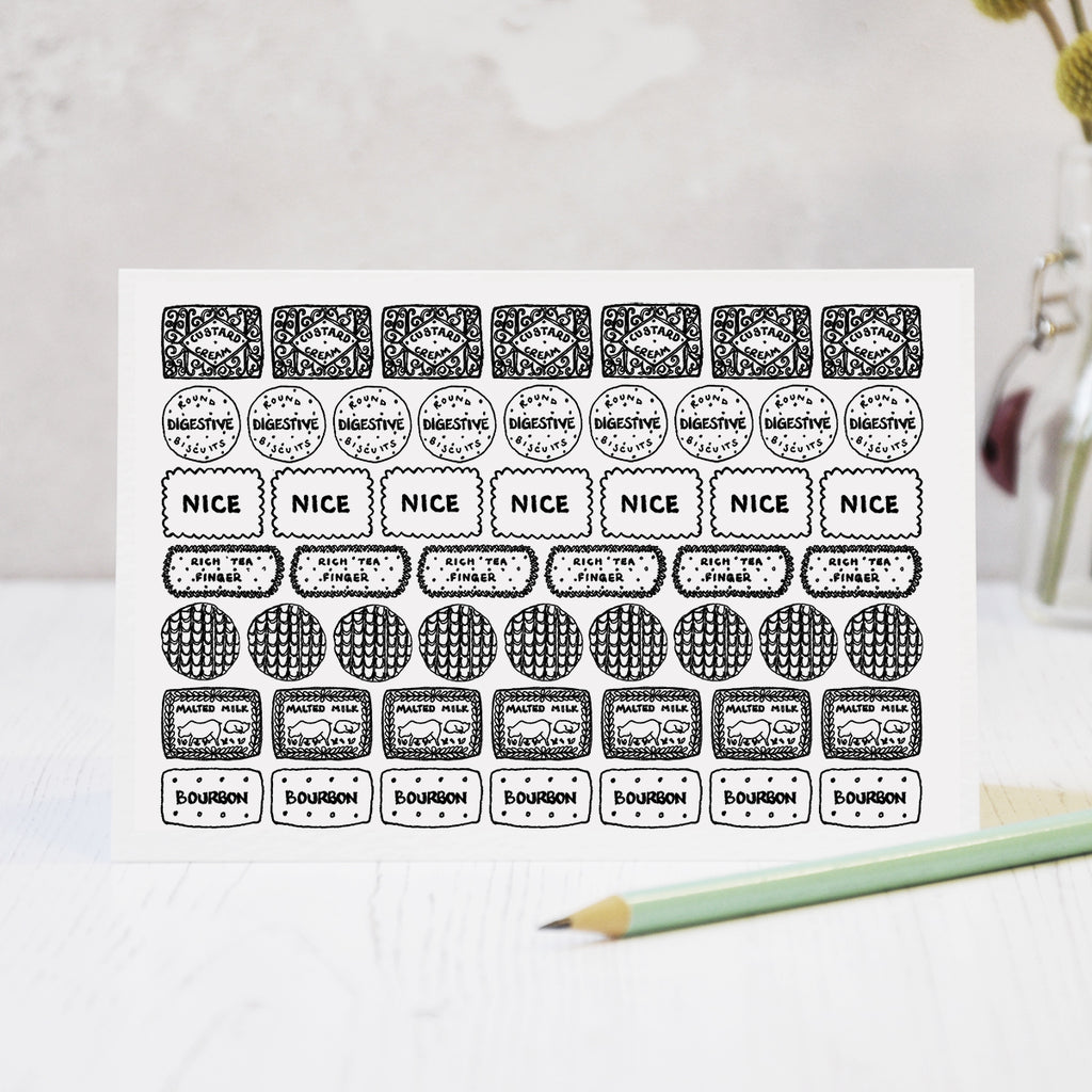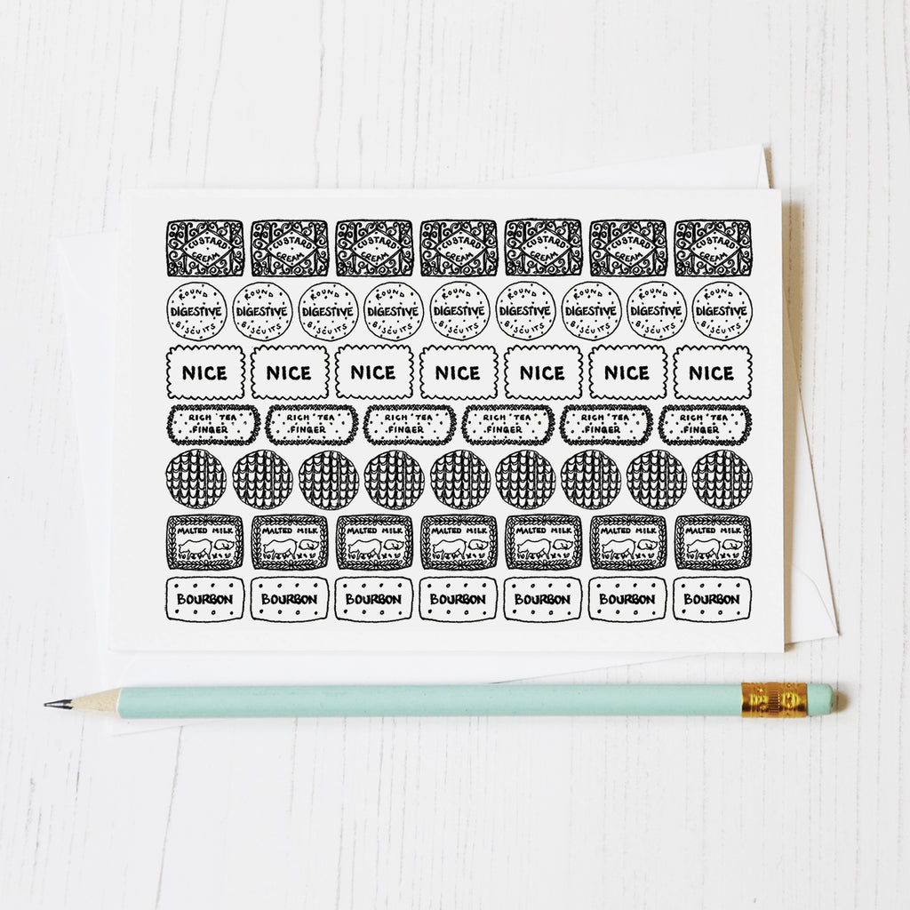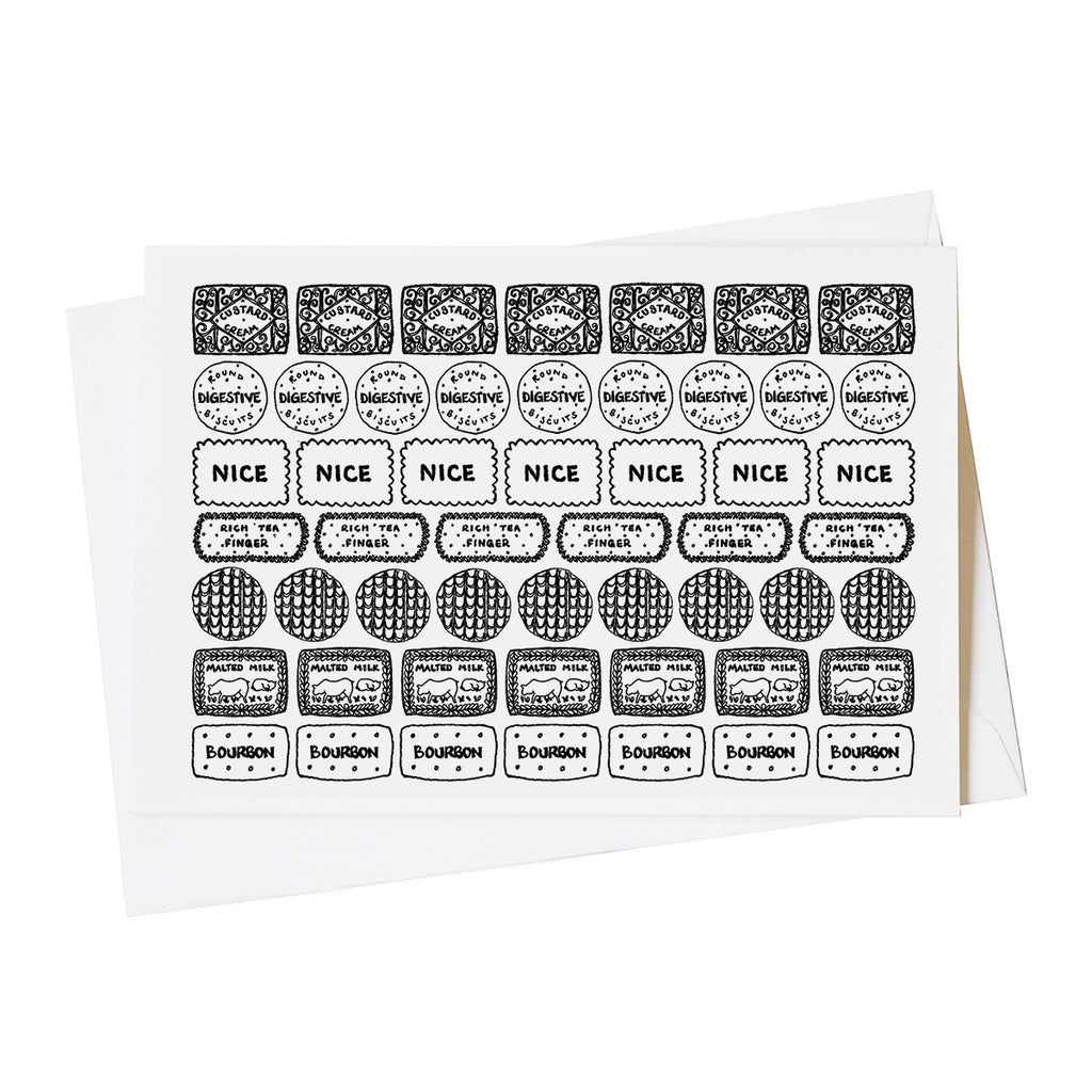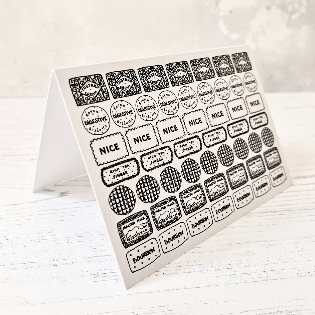 Drawn from our seaside studio in Brighton these beautiful cards are illustrated with intricate fine line drawings of popular biscuits including Custard creams, rich teas, and bourbons!