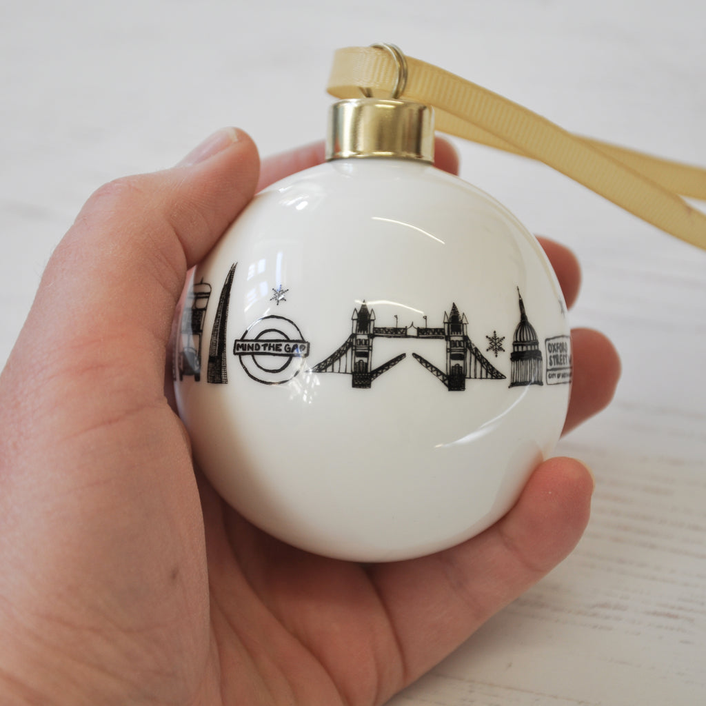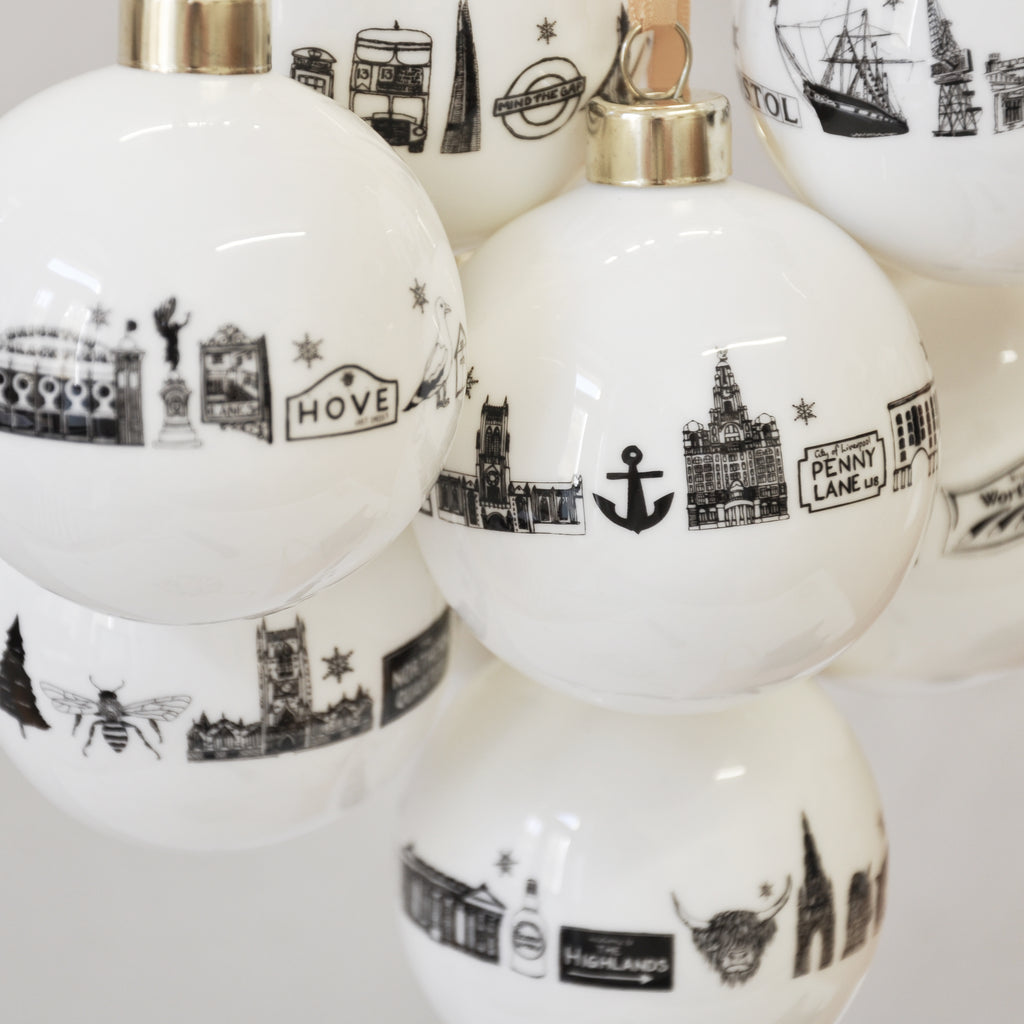 Each bauble is individually boxed and designs are also available for Brighton, Bristol, Liverpool, Manchester, Newcastle, Worthing and Scotland.