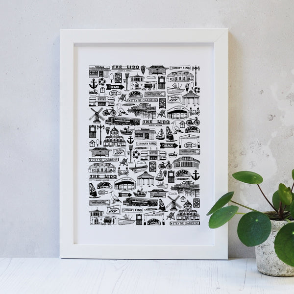 Worthing Illustrated Black And White Print