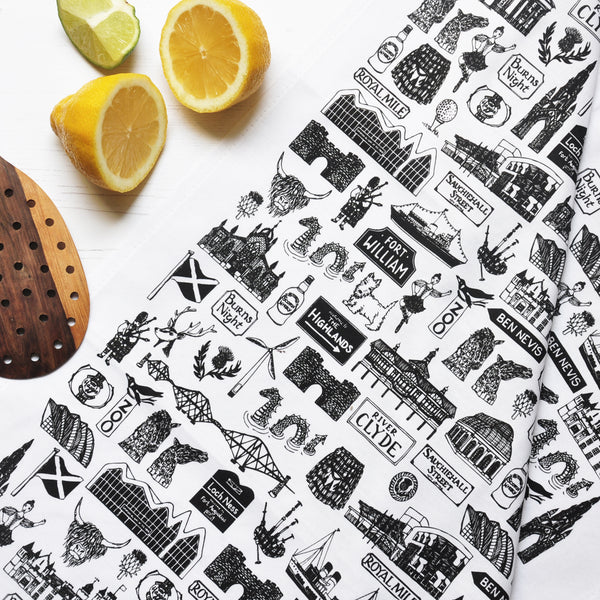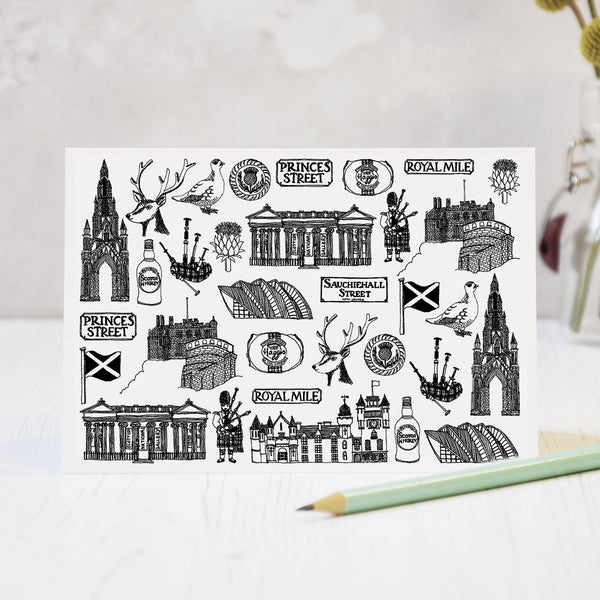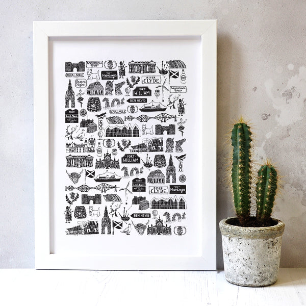 Scottish illustrated black and white print