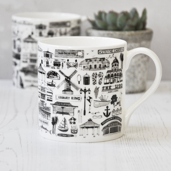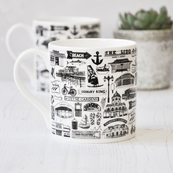 Worthing Illustrated Black And White Print
